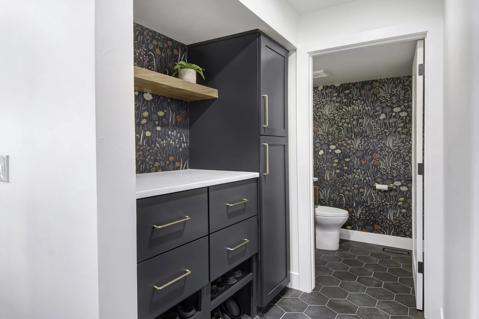 When you buy a house for the views but the layout prevents you from enjoying them - we’re happy to come to the rescue! This choppy floor plan needed a master plan to ensure that each space had a function and could be used with intention as we began to open things up. The homeowners embraced a moody, warm mid-century inspired palette and together we created a space that is just as beautiful as the lake the house backs to.