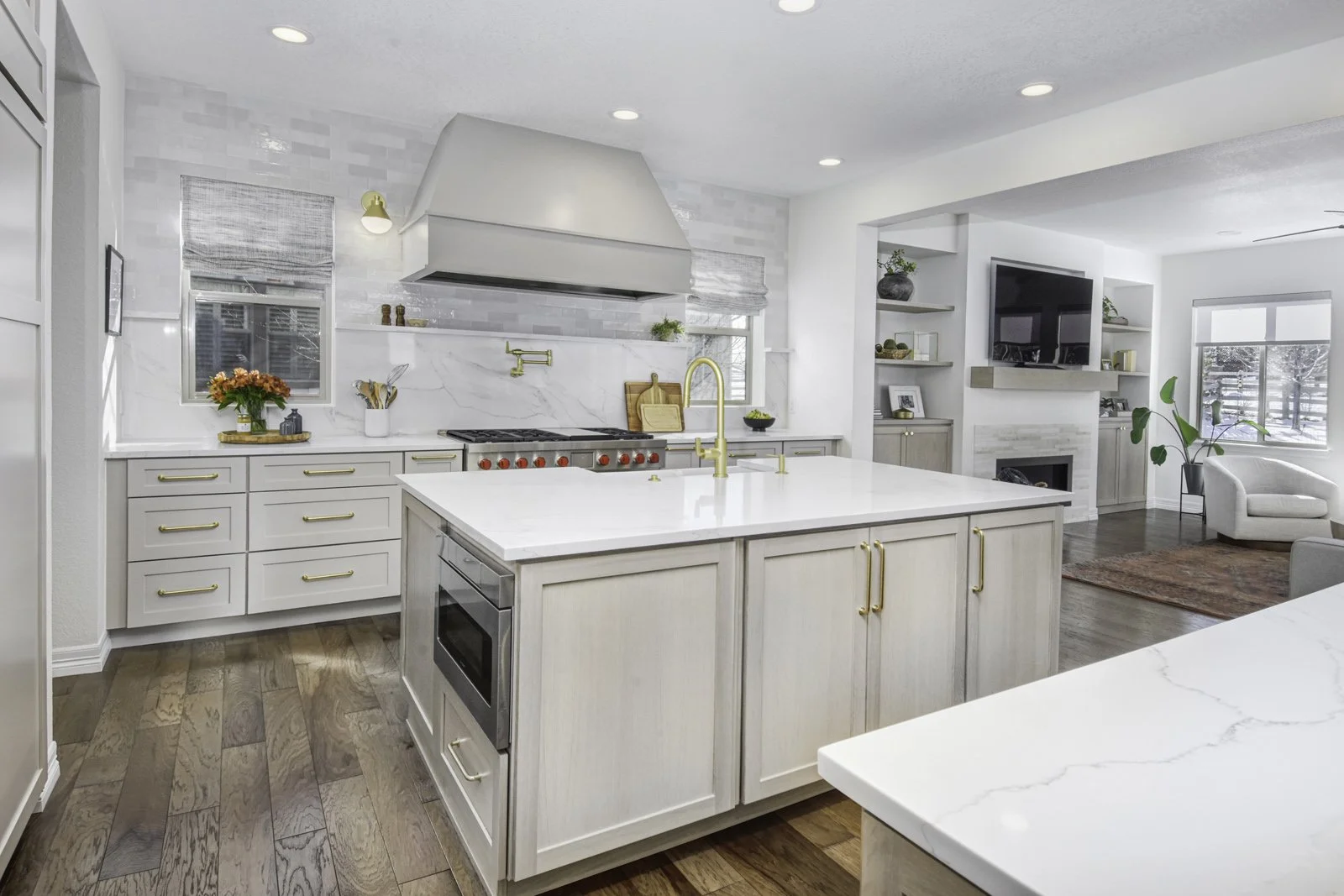 File this under the only client who ever asked us to reduce their storage, but their reasons were legit. This kitchen packed a whole lot of cabinetry into the space, but the layout didn’t function. We flipped the kitchen 90 degrees and made the range wall the focal point. A slab backsplash with quartz ledge above the 48” Wolf gas range gave a polished sleek look, while Zellige tile above the ledge added texture and interest. We added a second window to this wall to balance the room (and eliminate some cabinetry!). The long room called for a double island - one for prep and one for dining, and we used contrasting cabinetry to build a furniture like hutch to help break up that “so much cabinetry feel”. The end result? A kitchen that was far more functional, and while there’s still plenty of storage, the space certainly feels more intentional and thoughtful and less cabinet heavy.