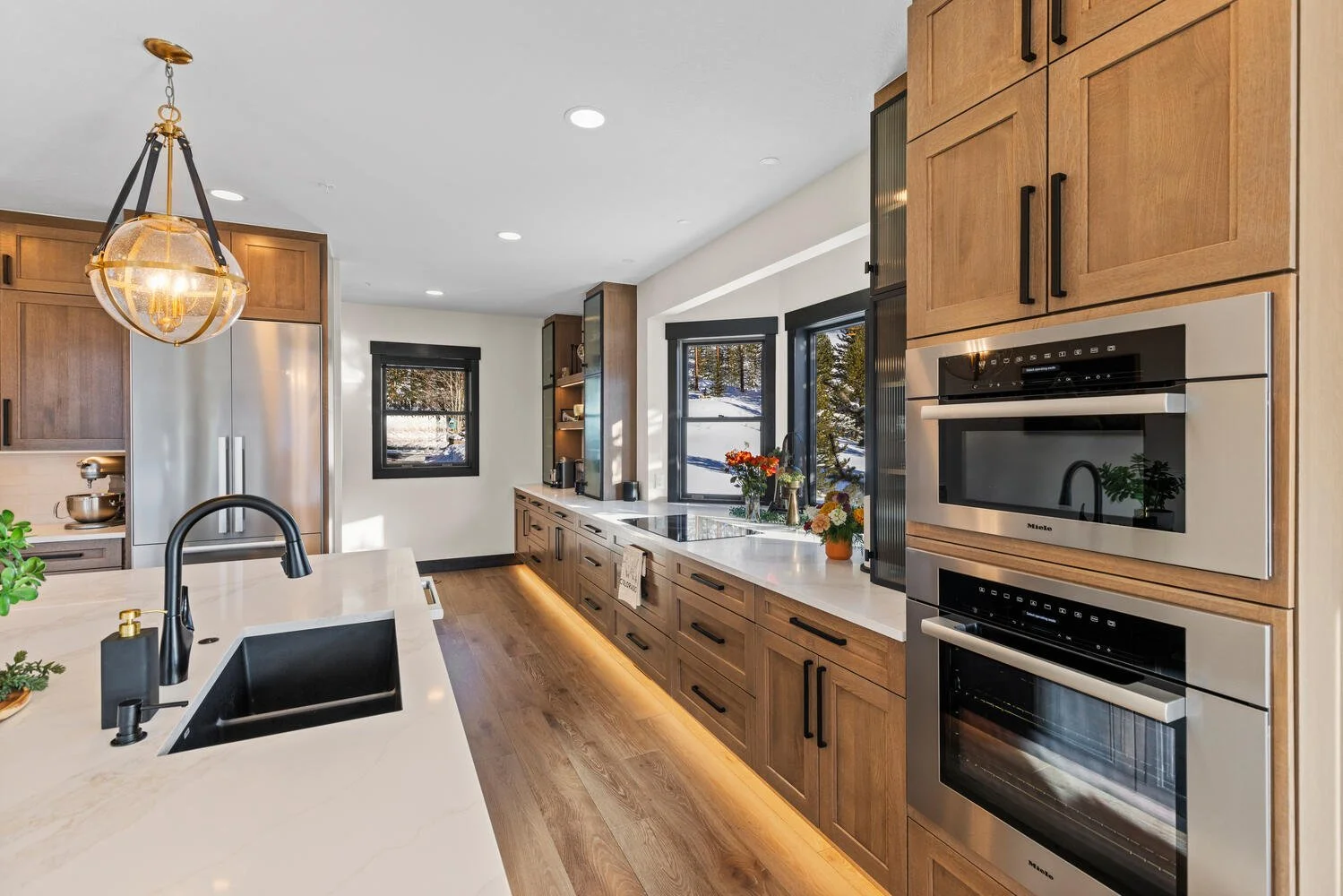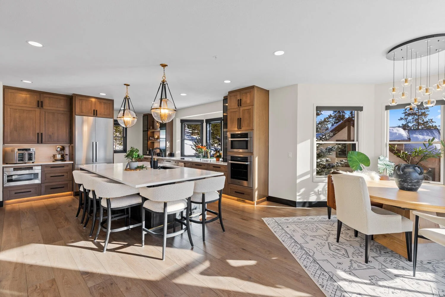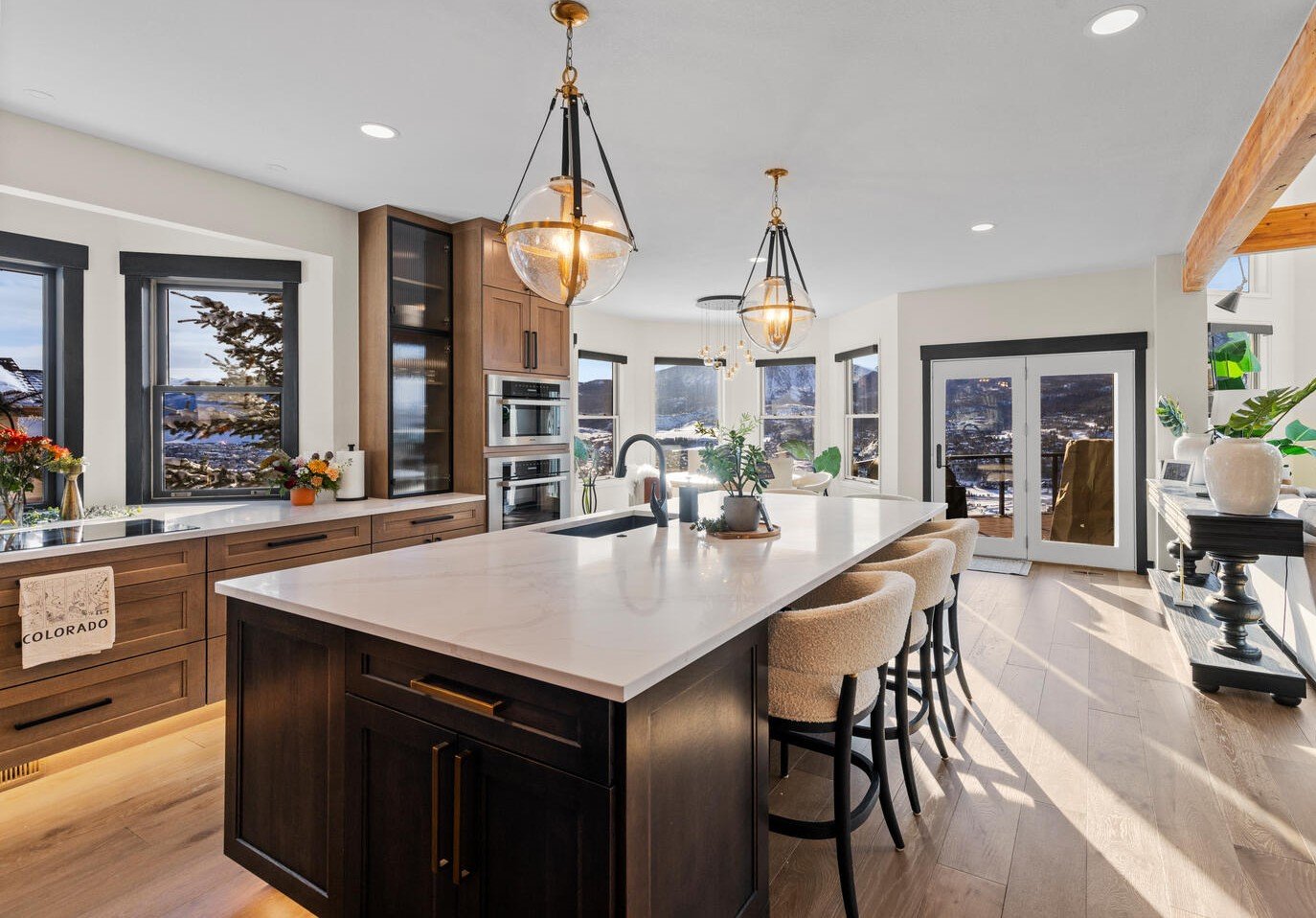We love this kitchen remodel in Silverthorne! The homeowners came to us for a refresh of their existing space, but as we got into the design we discovered a layout that significantly improved the flow of the kitchen – and embraced the gorgeous mountain views! By flipping the kitchen 180 degrees, we were able to significantly increase the size and function of the kitchen and create a better connection between the kitchen, dining and living spaces.
