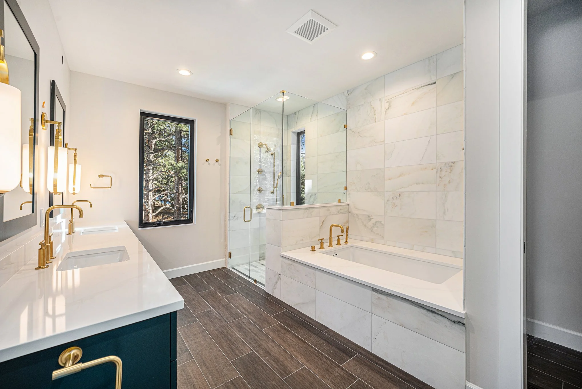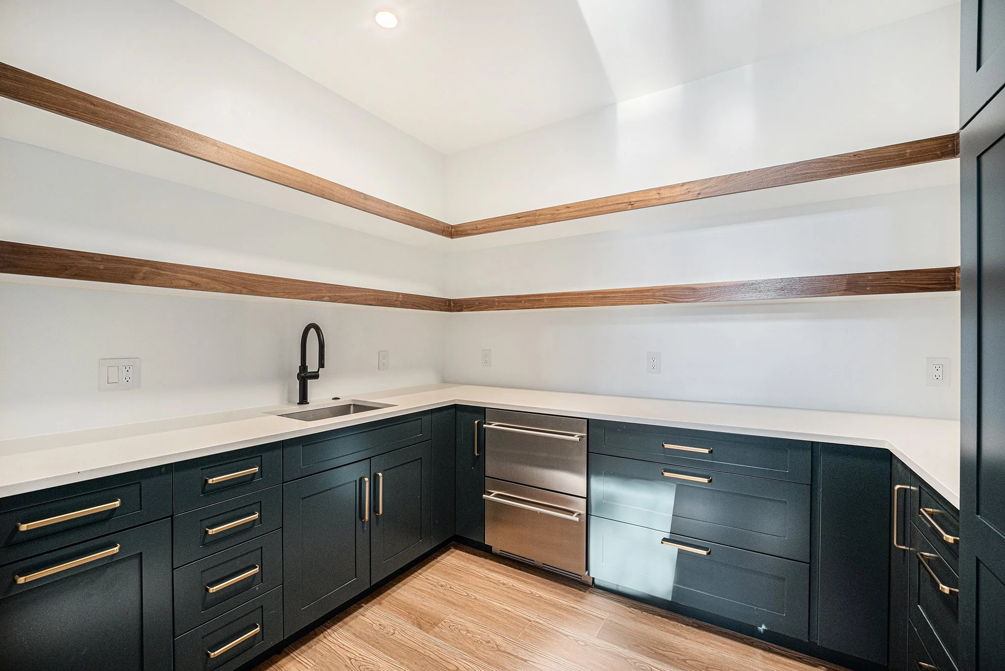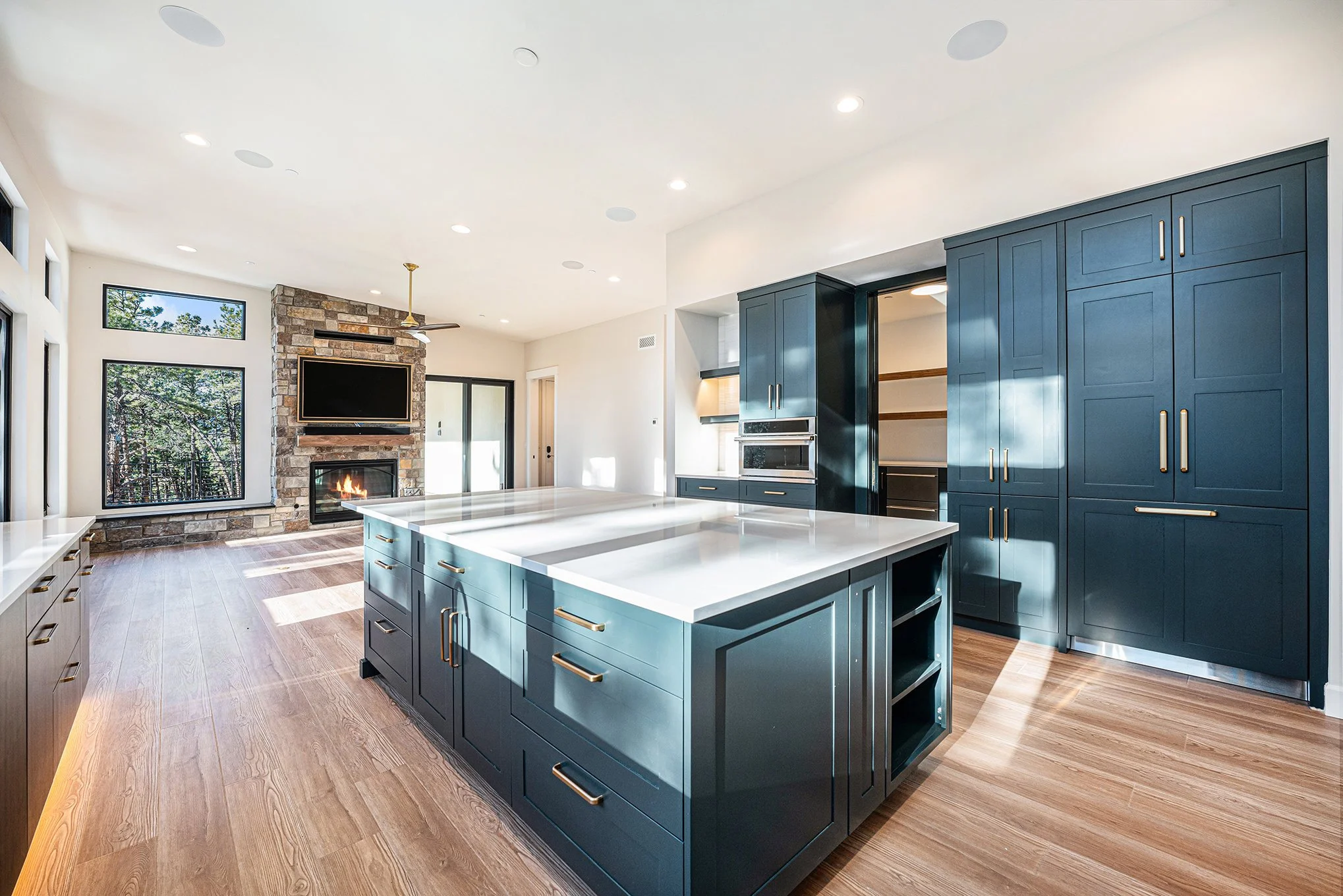 We were brought in on this project to help make final selections decisions, but as we started converting the floor plans we noticed a few issues that would make living in this home difficult: Primarily, the heart of the home - the kitchen, dining and living space - did not allow for proper clearances while also fitting real furniture. We relocated the dining room to give the kitchen the appropriate space needed for people to move around and barstools to be pulled out and giving more breathing room to the living room so a sofa could comfortably fit in the room. We relocated a door to a powder room so the toilet wasn’t visible from the front door and re-worked the mudroom to make it more functional for a busy family.